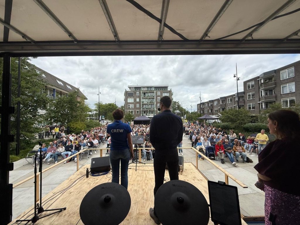 ‘Hier binnen’ (het is Leerdam Praise met o.a. een ‘openlucht’dienst, maar met ‘hier binnen’